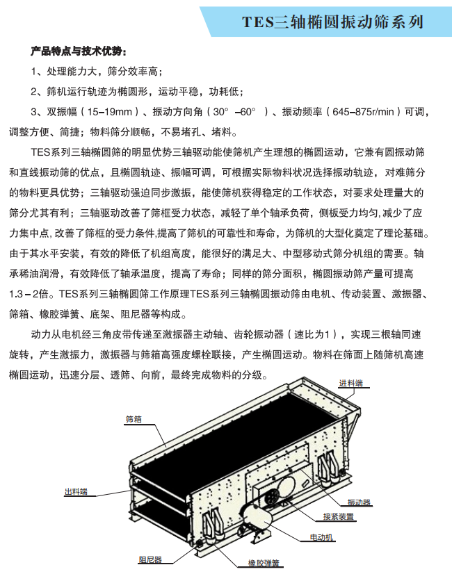 產品簡介】SPS型水平式三軸橢圓振動篩兼備了傾斜式圓振動篩和水平式直線振動篩的各自的優點,具有透篩性好、處理能力大、安裝高度小的特點,是各種礦山,石礦場,移動式篩分站的理想設備。